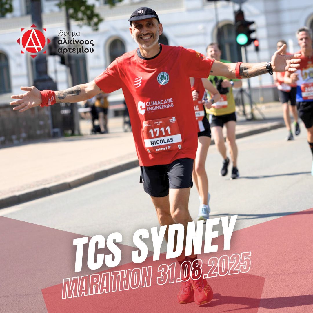 Η στήριξή σας παραμένει σημαντική. Κάνοντας τη δωρεά σας και γράφοντας “Sydney Marathon”, ενισχύετε το έργο του «Ιδρύματος Αλκίνοος Αρτεμίου» προσφέροντας αγάπη & φως.