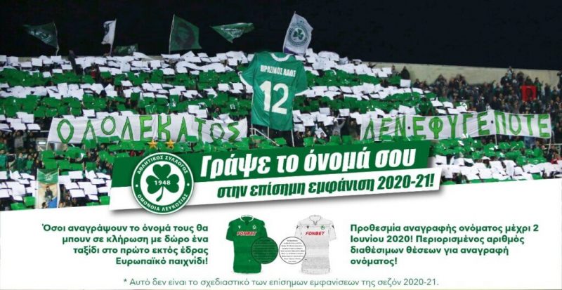 Προθεσμία μέχρι τις 2 Ιουνίου για αναγραφή ονόματος στη αγωνιστική φανέλα της νέας σεζόν. Περιορισμένος αριθμός θέσεων. Θα τηρηθεί σειρά προτεραιότητας.