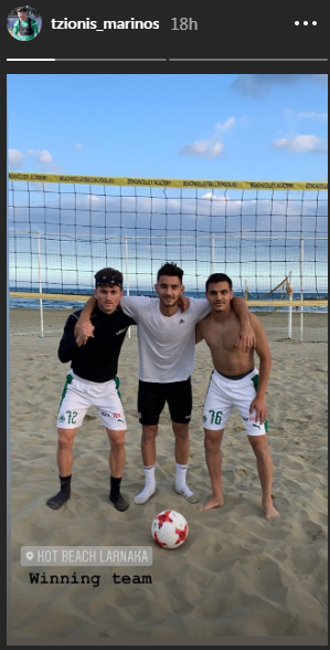 Τζιωνής, Χαραλάμπους και Παναγιώτου βρέθηκαν χθες στην παραλία του ΚΟΤ και έπαιξαν για λίγο ποδοβόλεϋ με τον Μαρίνο να αναρτά την παρακάτω φωτογραφία.
