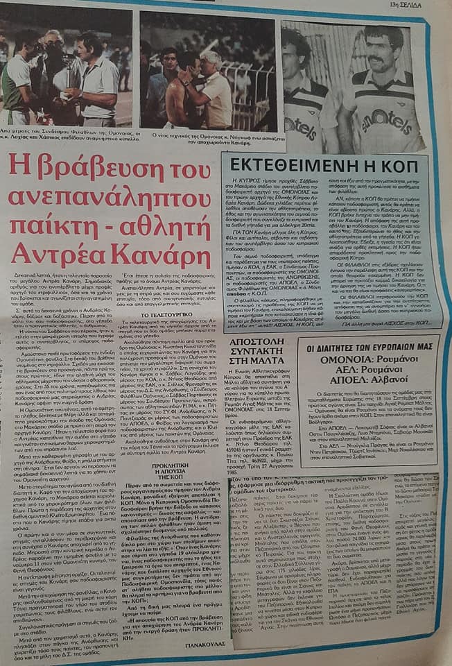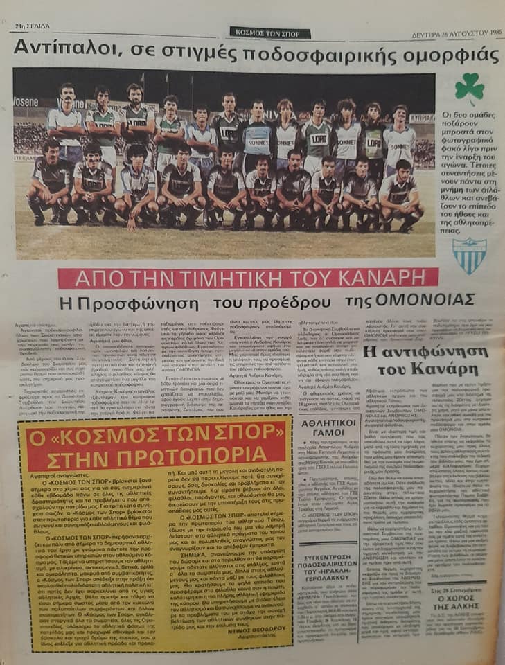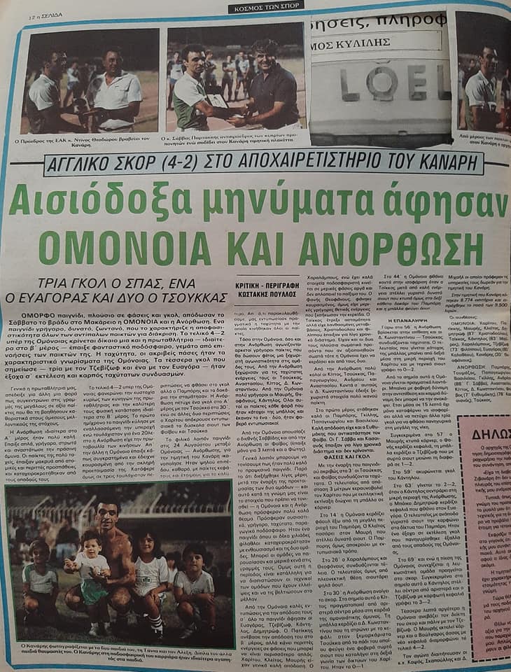 ΠΗΓΗ: ΑΥΘΕΝΤΙΚΗ ΕΦΗΜΕΡΙΔΑ “ΚΟΣΜΟΣ ΤΩΝ ΣΠΟΡ” ΦΥΛΛΟ 77 26/08/1985