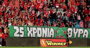 Πανό στα ελληνικά από τους Ultras Hapoel Tel Aviv