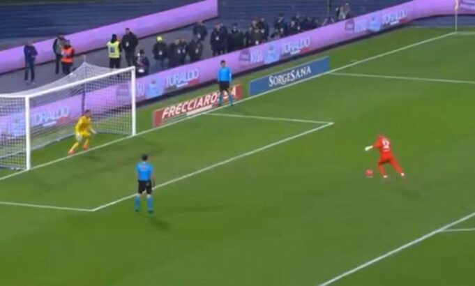 Μια από τις μεγαλύτερες ταχύτητες - αν όχι το απόλυτο ρεκόρ - κατέγραψε η εκτέλεση πέναλτι του Μιλίνκοβιτς Σάβιτς για τη Νάπολι στο ματς...