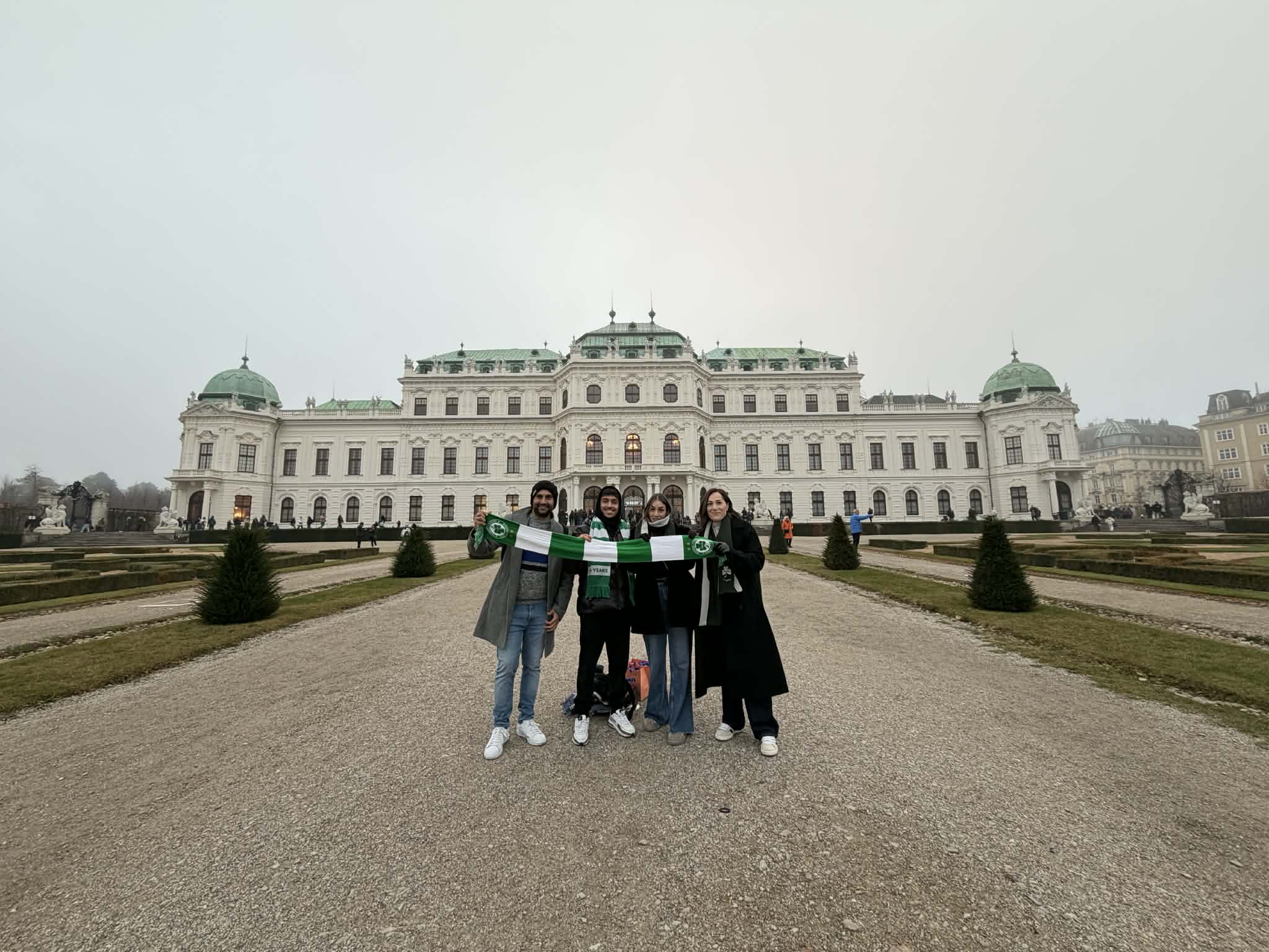 Στο πρόγραμμα της παρέας συμπεριλήφθηκε και επίσκεψη στο εντυπωσιακό παλάτι Μπελβεντέρε, όπου δεν έχασαν την ευκαιρία να φωτογραφηθούν μπροστά από το ιστορικό σημείο κρατώντας με περηφάνια το ΠΡΑΣΙΝΟ κασκόλ – το σήμα κατατεθέν κάθε ταξιδιού με την ομάδα.