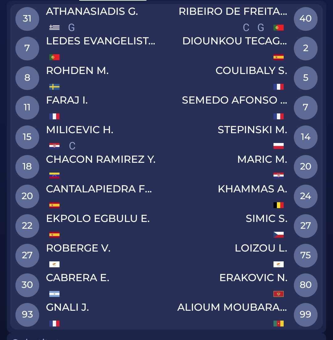Στον πάγκο:Ουζόχο, Μιχαήλ,Κίτσος, Γιόβετιτς, Εβάντρο, Μασούρας, Παναγιώτου, Μουσιαλόφσκι, Χατζηευαγγέλου, Χαραλάμπους, Νεοφύτου, Μπεζούς