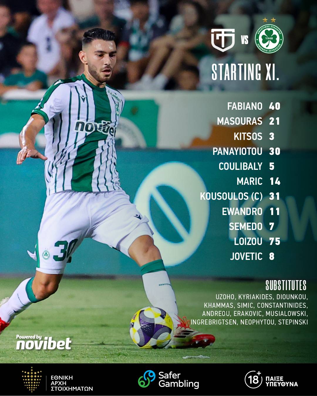 Στον πάγκο: Ουζόχο, Κυριακίδης, Ντιουνκού, Χαμάς, Σίμιτς, Κωνσταντινίδης, Αντρέου, Εράκοβιτς, Μουσιαλόφσκι, Ιγκεμπρίτσεν, Νεοφύτου, Στεπίνσκι
