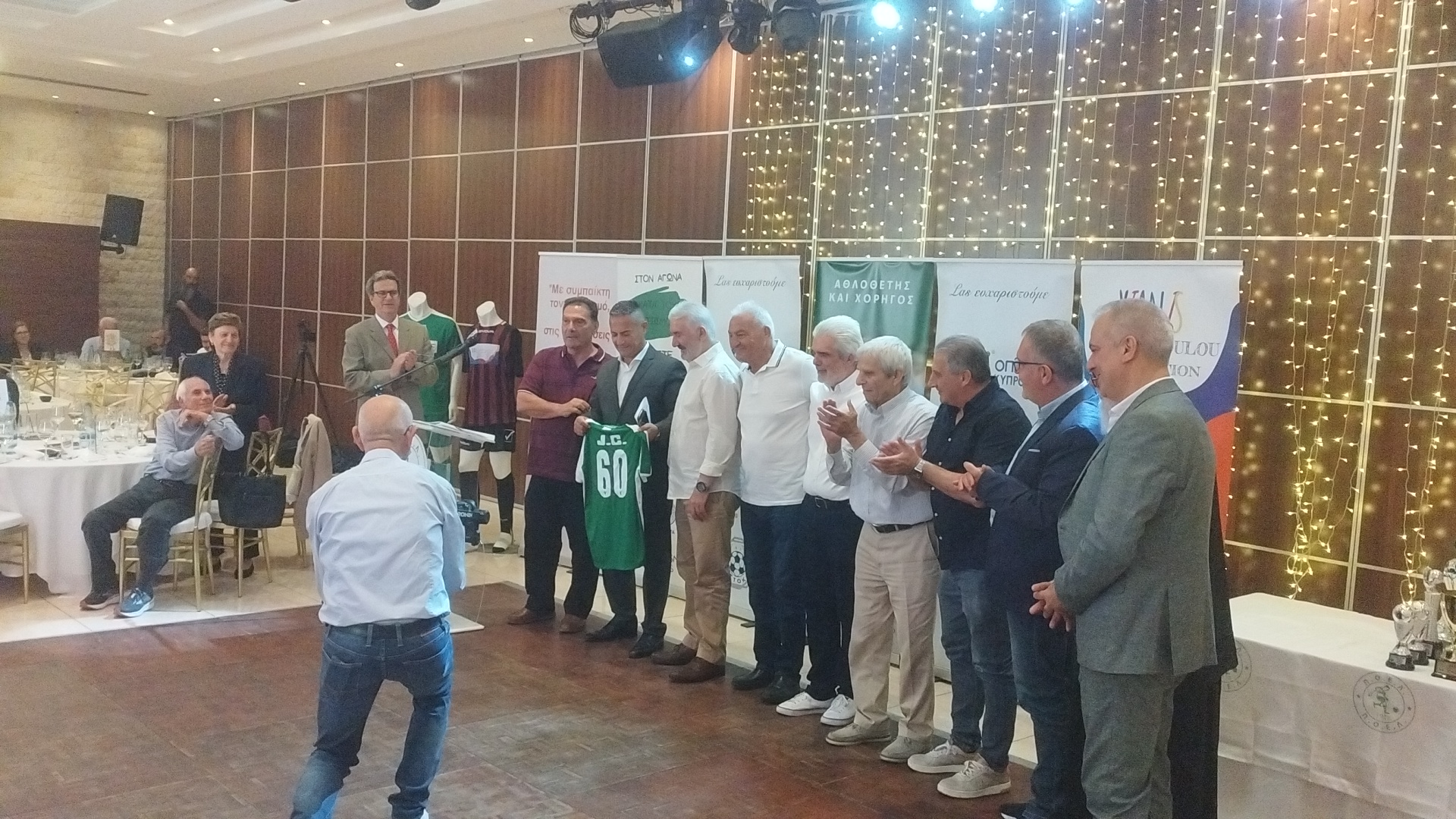 Φυσικά οι παλαίμαχοι της ΟΜΟΝΟΙΑΣ επεφύλαξαν στον Τζον Χριστοδούλου μια έκπληξη χαρίζοντας του μια φανέλα με τα αρχικά του “J.C” και τον αριθμό 60.