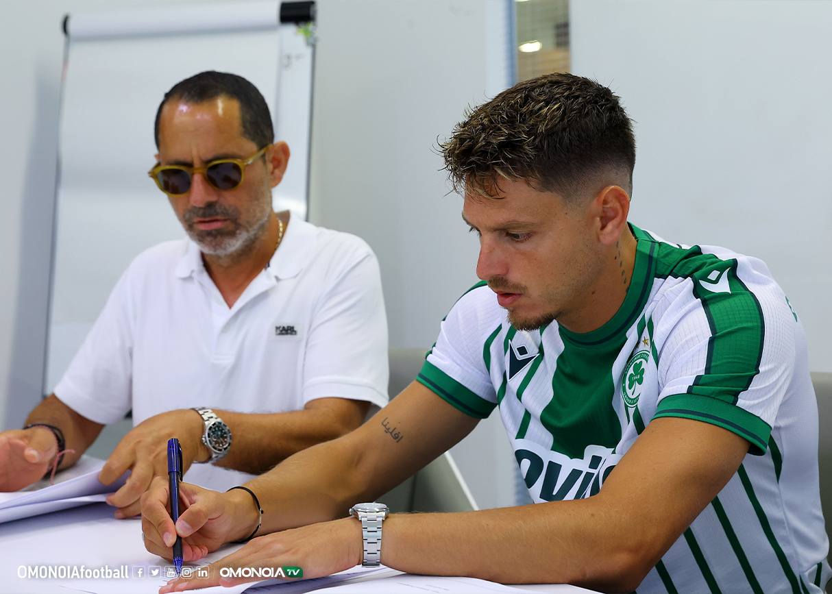 Φωτογραφίες από τις υπογραφές και τις πρώτες πόζες του Χατζηγιοβάνη με το τριφύλλι πόσταρε η ΟΜΟΝΟΙΑ στα σόσιαλ.