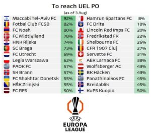 Μετά τους αγώνες του Β’ προκριματικού, αυτή τη φορά προβλέπει τις πιθανότητες πρόκρισης στα πλέι-οφ σε όλες τις ευρωπαϊκές διοργανώσεις για κάθε ομάδα.