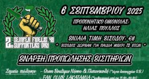 Το οργανωμένο σύνολο της ΟΜΟΝΟΙΑΣ, Αιώνια Πιστοί, σε ανάρτηση του υπενθυμίζει όλες τις σημαντικές πληροφορίες για το 2ο Semper Fidelis Supporters Day το οποίο θα γίνει το ερχόμενο Σάββατο στο «Ηλίας Πούλλος». Η ενημέρωση: 2nd SEMPER FIDELIS 48 SUPPORTERS DAY ️ Σάββατο, 6 Σεπτεμβρίου 2025 ΗΛΙΑΣ ΠΟΥΛΛΟΣ 17:00 “Μια ΟΜΑΔΑ, ένας ΛΑΟΣ και εχθρός ο … Continue reading Αιώνια Πιστοί: Υπενθύμιση για την Ημέρα των Οργανωμένων και το… πρόγραμμα!