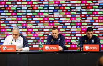 Δεδομένου ότι θα είναι απαιτητικό παιχνίδι, να περιμένουμε την εθνική ομάδα να αγωνιστεί με πιο αμυντικογενές σχήμα; «Προσπαθούμε να έχουμε μία δικιά μας ταυτότητα, είμαστε σ’ ένα επίπεδο που πρέπει να προσαρμοστούμε στο παιχνίδι τους. Θέλουμε να προσθέσουμε και τα δικά μας στοιχεία. Δεν θα αλλάξουμε την προσέγγιση μας με αυτό που παρουσιάσαμε μέχρι τώρα, με όλο το σεβασμό και στον αυριανό αντίπαλο».
