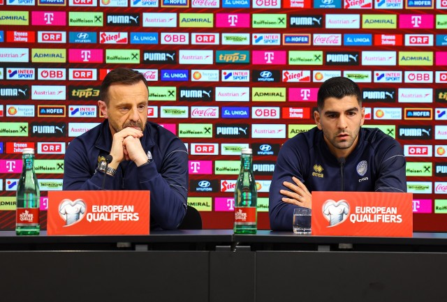 «Ξεκινάει μία νέα δυάδα παιχνιδιών για τα προκριματικά του Μουντιάλ, ερχόμαστε να αντιμετωπίσουμε μία καλή αντίπαλο όπως η Αυστρία. Ως νέα ομάδα θα έλεγα ότι είμαστε μία ομάδα που προσπαθούμε να παίξουμε καλό ποδόσφαιρο, να γίνουμε πιο απαιτητικοί σε πολλά κομμάτια του παιχνιδιού μας. Είμαστε ικανοποιημένοι από την παρουσία μας ως ομάδα. Στα τελευταία δεν είχαμε την αποτελεσματικότητα που θα θέλαμε. Η διάθεση και η θέληση, αλλά και το πλάνο θέλουμε να το έχουμε και στο αυριανό παιχνίδι»