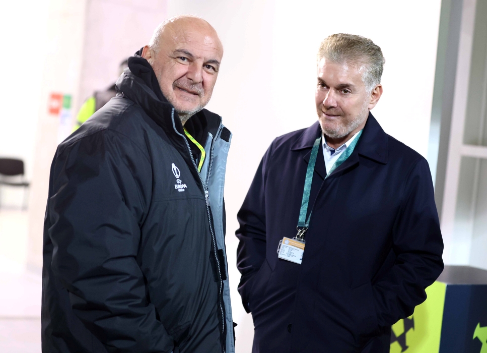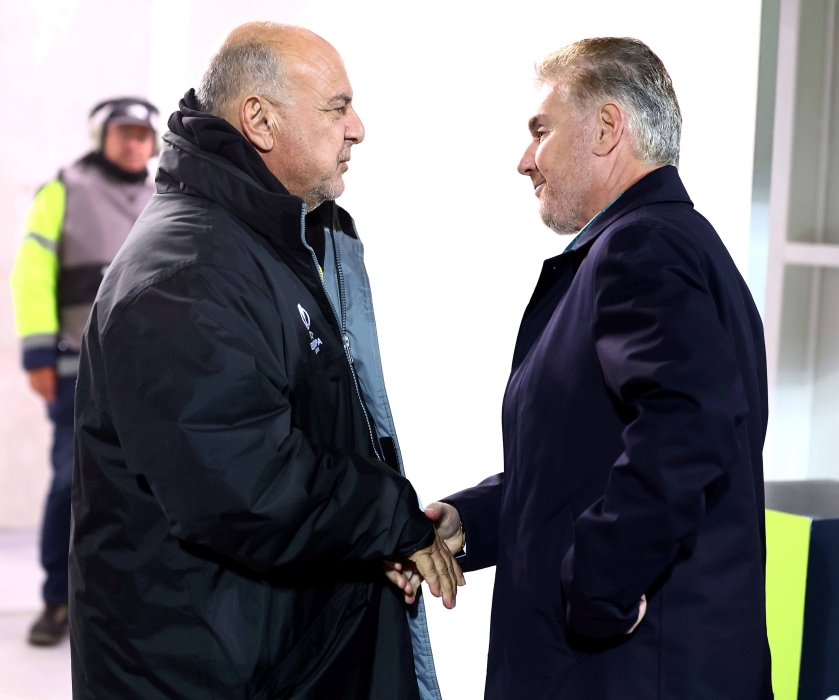 Ο πρόεδρος Σταύρος Παπασταύρου τα είπε σε καλό κλίμα με τον Άντρο Καραπατάκη λίγη ώρα πριν την έναρξη.