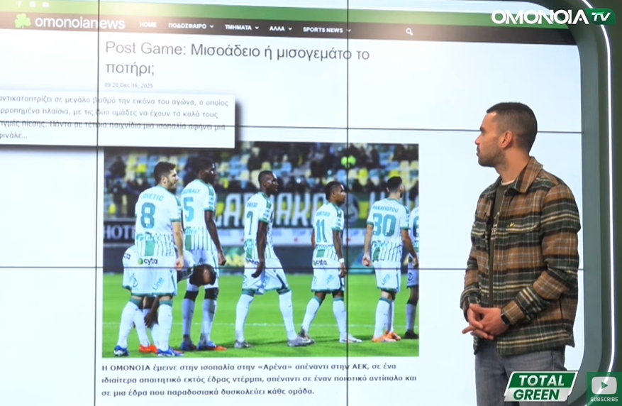 Home TOP NEWS Τύπος & ΜΚΔ: Οι αντιδράσεις μετά τη Βιέννη και την Λάρνακα TOP NEWSΠΟΔΟΣΦΑΙΡΟ Τύπος & ΜΚΔ: Οι αντιδράσεις μετά τη Βιέννη και την Λάρνακα [Βίντεο] 10:32 Dec 17, 2025 FacebookTwitterViberWhatsApp Το ένθετο Τύπος & ΜΚΔ με τον Γιώργο Σαζεΐδη, στο νέο επεισόδιο του TOTAL GREEN. Δείτε το βίντεο: RELATED ARTICLESMORE FROM AUTHOR Παπασταύρου: «Ως ΟΜΟΝΟΙΑ Foundation δεσμευόμαστε ότι κάθε ευρώ αξιοποιείται με απόλυτη διαφάνεια» Το GALA DINNER του OMONOIA Foundation: Εισφορές €500.000, δωρεά αυτοκίνητων και αλληλεγγύη! Το ψάχνει σαν τρελός ο Γιόβε! ΑΚΑΔΗΜΙΑ ΟΜΟΝΟΙΑΣ: Σημαντική συνάντηση στο περιθώριο του ματς με την Ραπίντ Τα δίνει όλα και είναι η «ψυχή» της ομάδας! Κωδικός Ευρώπη για το καλύτερο δυνατό πλασάρισμα! Χρόνια πολλά στον κορυφαίο κανονιέρη της ΟΜΟΝΟΙΑΣ και του κυπριακού ποδοσφαίρου! Η ανάλυση της διαιτησίας του αγώνα με την ΑΕΚ – Ο σχολιασμός για την φάση του ακυρωθέν γκολ Το αφήνει πίσω της και βλέπει τα δύο τελευταία για το 2025
