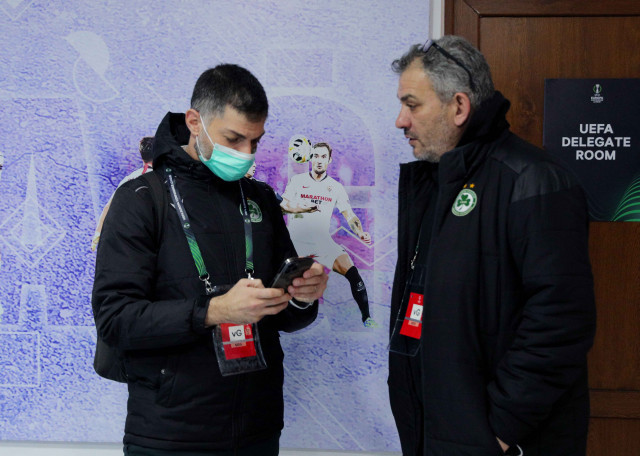 Οι πρώτες εικόνες από το Τοφίκ Μπαράμοφ του Μπακού. Η άφιξη της αποστολής, τα αποδυτήρια που φιλοξενούν την ομάδα μας και η προθέρμανση.