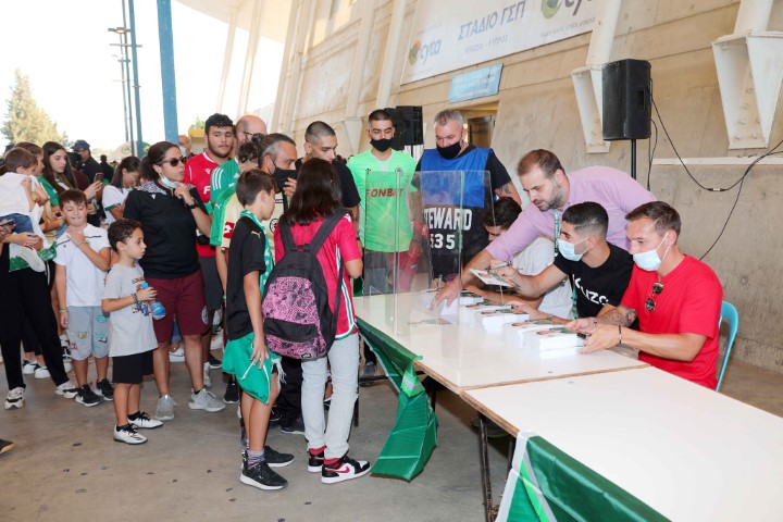 Όμορφες εικόνες από το χεθσινό Fan Day, λίγο πριν την έναρξη του παιχνιδιού με την Πάφο. Παιδικά χαμόγελα και στιγμές Ομονοιάτικες με τον κόσμο να χαλαρώνει προτού εισέλθει στο γήπεδο για το παιχνίδι.