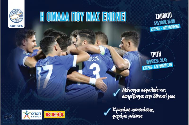 Ο αγώνας Κύπρος – Μαυροβούνιο θα γίνει το Σάββατο 5 Σεπτεμβρίου και θα αρχίσει στις 19:00.