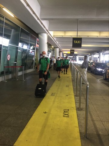 Οι ποδοσφαιριστές αλλά και τα υπόλοπα μέλη της ΟΜΟΝΟΙΑΣ αφού πρώτα πέρασαν από τους απαραίτητους ελέγχους στο αεροδρόμιο της Πολωνίας, εξήλθαν από αυτό και είναι έτοιμοι για να μπουν στο λεωφορείο που θα τους μεταφέρει στο ξενοδοχείο.