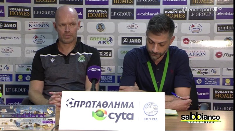 «Είχαμε καλή απόδοση με όχι κανονική ομάδα. Η απόδοση ήταν καλύτερη από το αποτέλεσμα και είμαι χαρούμενος που είδα την προσπάθεια τη νοοτροπία και την ποιότητα των μικρών. Είμαστε στην αρχή της σεζόν και έπρεπε να παίξουμε τρία απαιτητικά παιχνίδια συνεχόμενα. Χρειαζομαστε περισσότερους από 15 καλούς παίκτες Σήμερα αυτοί που ξεκίνησαν ήταν πολύ καλοί. Μπορούσαν να κερδίσουν το παιχνίδι. Συνηθως δεν δεχόμαστε με αυτό τον τρόπο γκολ. Βενιζέλος, Τζιωνής, Χάμπος, Παναγιώτου και Κίκο είχαν καλή παρουσία. Αν επιλέγαμε τους 11 που έπαιξαν την Τετάρτη τότε ή θα είχαμε τραυματισμούς, ή δεν θα είχαμε καλή απόδοση σήμερα ή δεν θα είχαμε καλή απόδοση την ερχόμενη Τετάρτη. Μπορούσαμε να φύγουμε με 3 βαθμούς. Πέρσι ήρθαμε με την καλύτερη μας ομάδα και χάσαμε. Θα διαχειριστούμε το δύσκολο πρόγραμμα και ένας λόγος που οι Κυπριακές ομάδες πήγαν καλά στην Ευρώπη στο παρελθόν ήταν ότι είχαν βοήθεια σε αυτό το σημείο της σεζόν σε σχέση με το πρόγραμμα.Θα κάνουμε ότι καλύτερο για να περάσουμε την Τετάρτη. Παίξαμε στην Ευρώπη την Τετάρτη 120 λεπτά. Έπρεπε να κάνουμε αλλαγές. Θα ήταν τρελλό όταν ξεκινάς με τέτοιο πρόγραμμα να χρησιμοποιείς την ίδια ομάδα. Ήταν ωράιο που είδα τους μικρούς να ανταποκρίνονται όμως στη συνέχεια σίγουρα θα επιλέγουμε την καλύτερη μας ομάδα διότι θα έχουμε περισσότερες μέρες σε σχέση με αυτές που είχαμε αυτη την εβδομάδα».