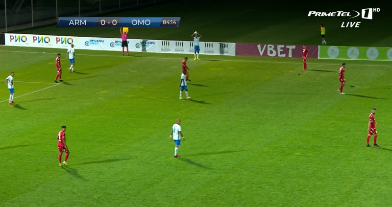 Δεν μπήκαν με επιθετικό προσανατολισμό στο γήπεδο οι δύο ομάδες. Η ΟΜΟΝΟΙΑ δεν μπορούσε να βρει τον τρόπο να διασπάσει την άμυνα των Αρμένιων οι οποίοι στο ξεκίνημα του αγώνα κράτησαν λίγο περισσότερο τη μπάλα. Φάσεις δεν είδαμε στα πρώτα λεπτά. Στο 18 ο Λέτσιακς πάτησε την αντίπαλη περιοχή, έκανε μία παράλληλη σέντρα αδύναμη όμως δεν ανησύχησε ο Τσούπιτς.