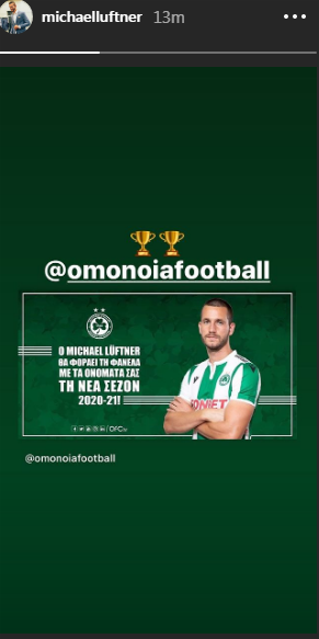 «Ενημερώνουμε πως έχουμε καταλήξει σε συμφωνία με την FC Copenhagen και τον ποδοσφαιριστή, Michael Lüftner, για επέκταση της μεταξύ μας συνεργασίας υπό την μορφή δανεισμού μέχρι το 2021.