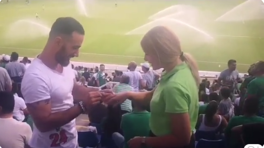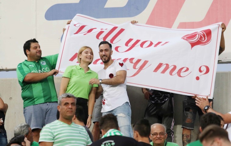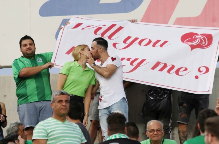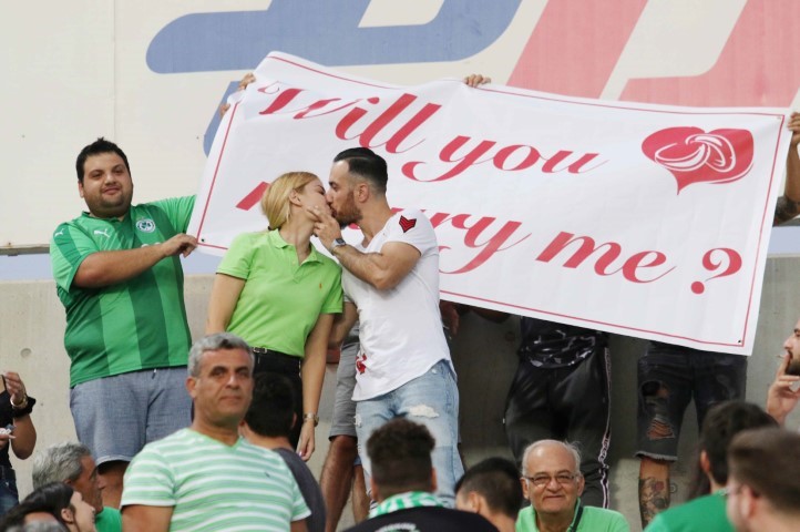 «Το ζήσαμε και αυτό στη φετινή σεζόν. Πρόταση γάμου στο γήπεδο! Γιώργο και Θεοδώρα να ζήσετε!» αναφέρει η ομάδα μας στην ανάρτηση της.