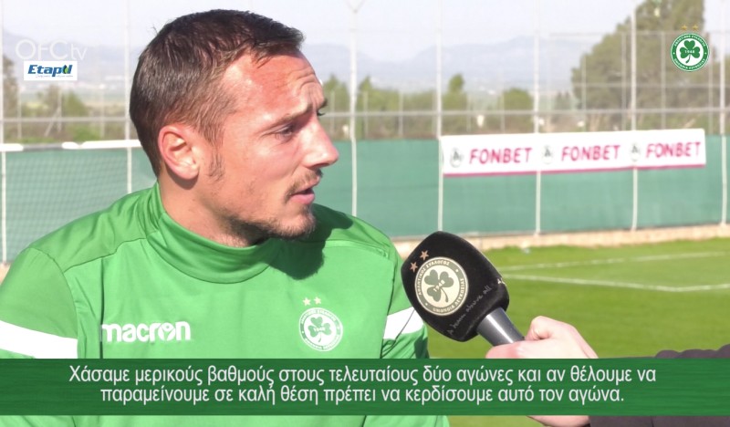 «Χρειάζεται να βρούμε πίσω την νοοτροπία μας γιατί έχουμε πολύ καλή νοοτροπία σε αυτή την ομάδα, όπως λέει και το επιτελείο. Πρέπει να βρούμε πίσω αυτή τη νοοτροπία γιατί φυσιολογικά στο σπίτι μας κανένας δεν μπορεί να μας κερδίσει και αν παίξουμε σε ψηλό επίπεδο μπορούμε να κερδίσουμε τον καθένα».