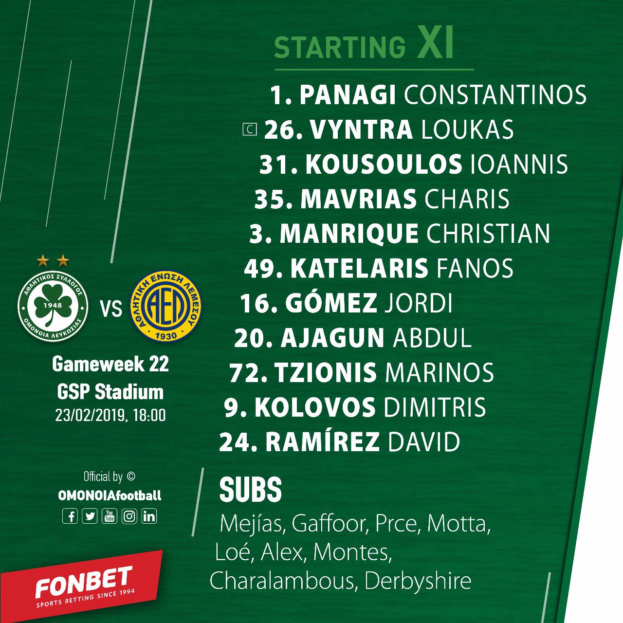 Σε μερικά λεπτά είναι ορισμένη η έναρξη της αναμέτρησης της ΟΜΟΝΟΙΑΣ με την ΑΕΛ, με την ομάδα μας να θέλει τη νίκη. Οι «γαλαζοκίτρινοι» της Λεμεσού είναι μια πολύ υπολογίσιμη ομάδα και η ΟΜΟΝΟΙΑ θα χρειαστεί σχεδόν μια τέλεια εμφάνιση για να πάρει το τρίποντο. Ο Γιάννης Αναστασίου απαιτεί να δει από τους πρώτους έντεκα όλα αυτά που δουλεύτηκαν στην προπόνηση την περασμένη βδομάδα.