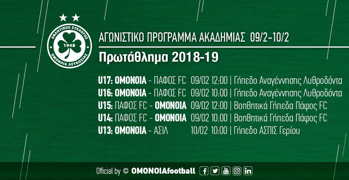 U17:ΟΜΟΝΟΙΑ – ΠΑΦΟΣ FC, 09/02 12:00 | Γήπεδο Αναγέννησης Λυθροδόντα