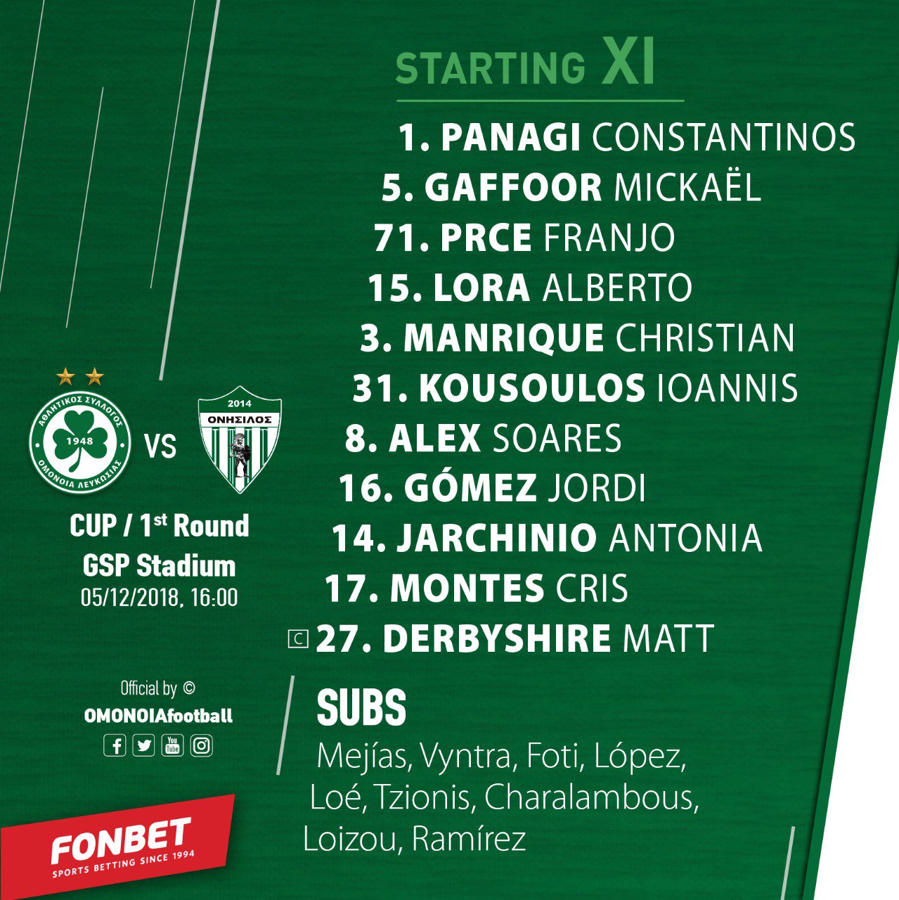 Βασικοί στην αρχική ενδεκάδα της ΟΜΟΝΟΙΑΣ απέναντι στον Ονήσιλο βλέπουμε πως ξεκινούν ο Κωνσταντίνος Παναγή, που παίρνει θέση βασικού κάτω από τα δοκάρια της ομάδας μας, αλλά και ο Κρίς Μόντες μετά από καιρό.