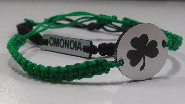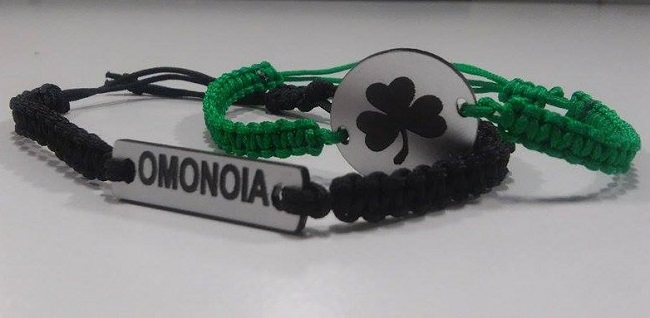 Τα δύο υπέροχα αυτά βραχιόλια που μπορείτε να δείτε στις φωτογραφίες τα έκανε η Κυρία Ήβη Καϊάφα και τα πουλούσε σήμερα έξω από το γήπεδο στο παιχνίδι της ΟΜΟΝΟΙΑΣ με σκοπό την οικονομική ενίσχυση του σωματείου μας! Μπράβο στη μητέρα του προπονητή μας και σε όσους και όσες αγόρασαν τα βραχιόλια βοηθώντας την ΟΜΟΝΟΙΑ.