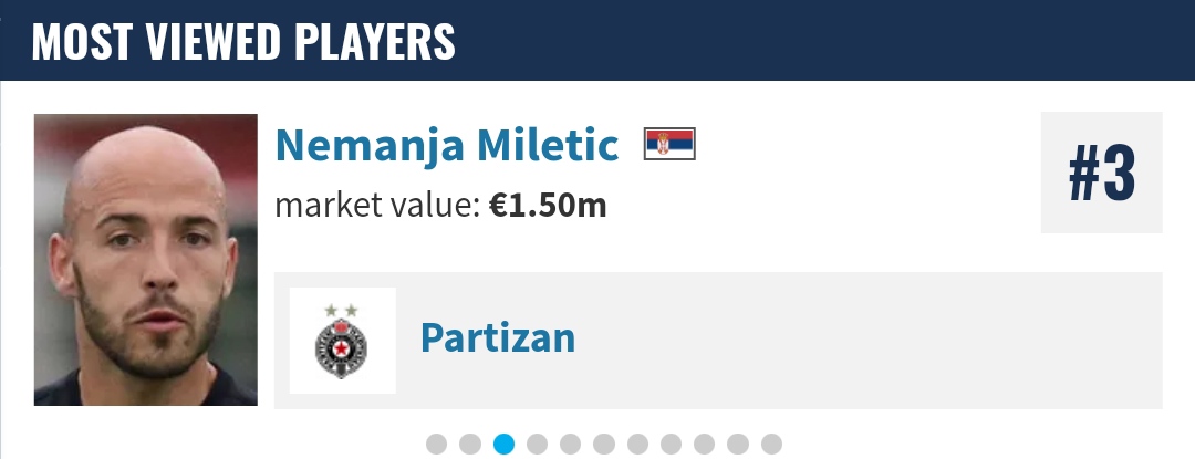 Ο 31χρονος Σέρβος ποδοσφαιριστής ανέβηκε στη 3η θέση, στη κορυφαία σελίδα που ασχολείται με τα στατιστικά των ποδοσφαιριστών, transfermarkt.com, στη κατηγορία με την μεγαλύτερη επισκεψιμότητα στο προφίλ τους τις τελευταίες 24 ώρες.