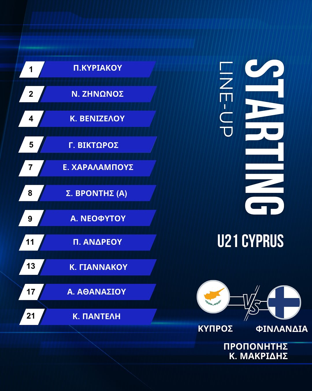 Η Εθνική Κύπρου Κ21 αντιμετωπίζει στις 19:00 την αντίστοιχη ομάδα της Φινλανδίας στο πλαίσιο της προκριματική φάσης του Ευρωπαϊκού Πρωταθλήματος Κ-21.